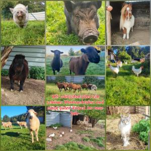 11 Hunde, 2 Kater, 2 Ponys, 10 Schafe, 2 Minischweine und 30 Hühner